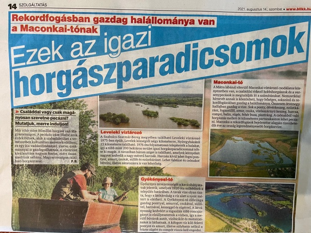 A Blikk augusztus 14-i számában három magyarországi horgászvíz került kiemelésre, köztük a rekordfogásokat külön is kiemelve a Maconkai-víztározó. Köszönjük!