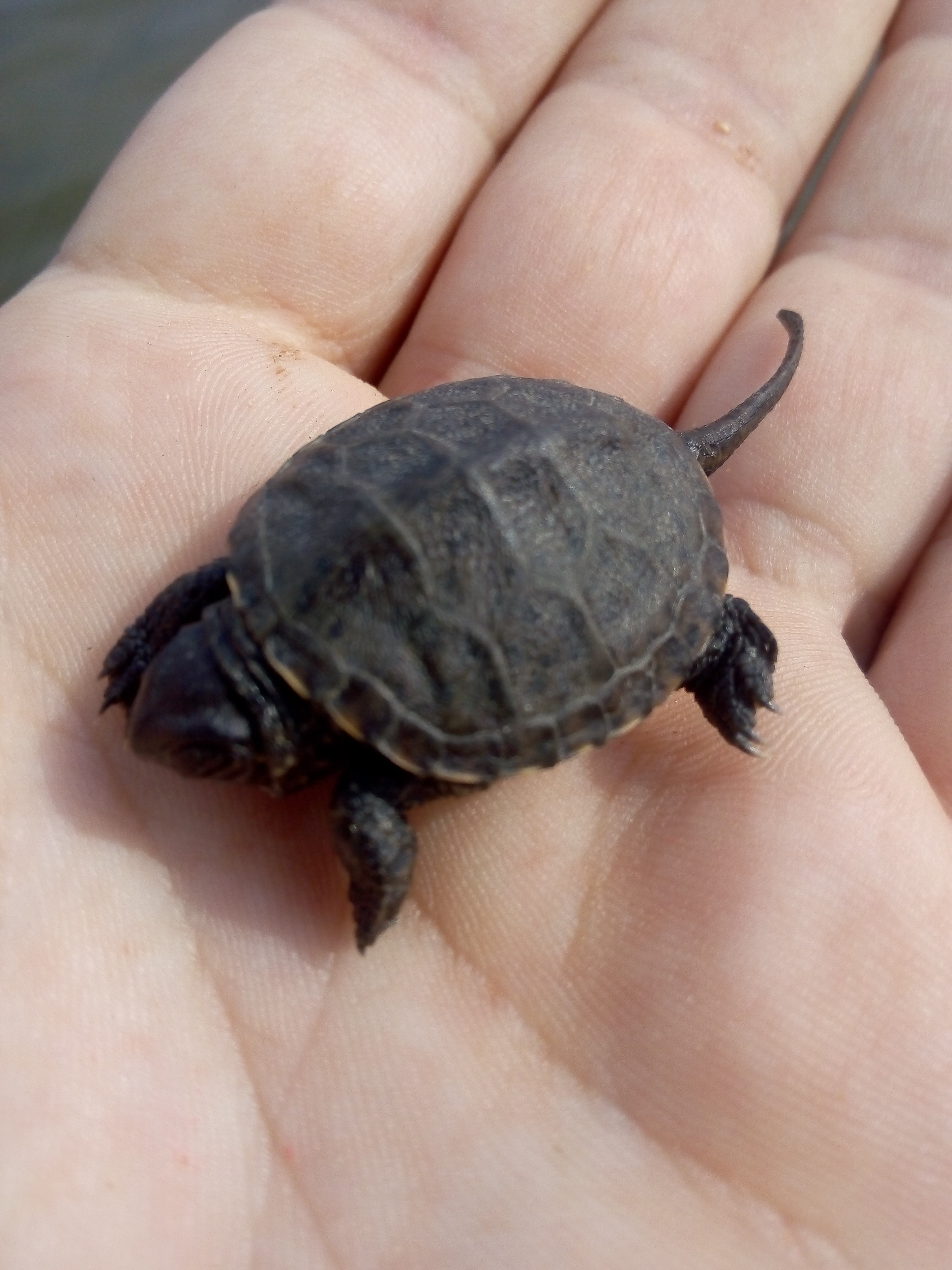 Lantos Ede horgásztársunktól kaptuk azt a II. szigeten áprilisban készült felvételt, amely ékesszólóan bizonyítja, hogy idén is szaporodtak kedves mocsári teknőseink. A picuri teknőc pár napos lehet, s nagyon ritka, hogy ilyenkor fényképezőgép elé kerül.